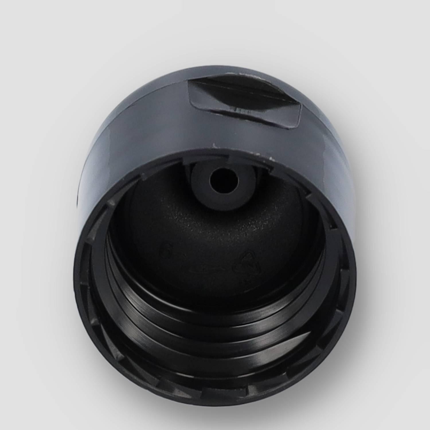Food-grade PP sluiting in zwart uitvoering met 20-410 hals, inhoud 0 ml. Hittetolerant PP-materiaal.
